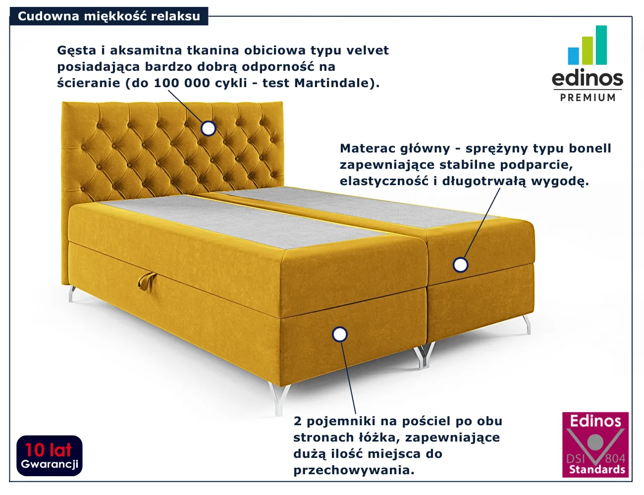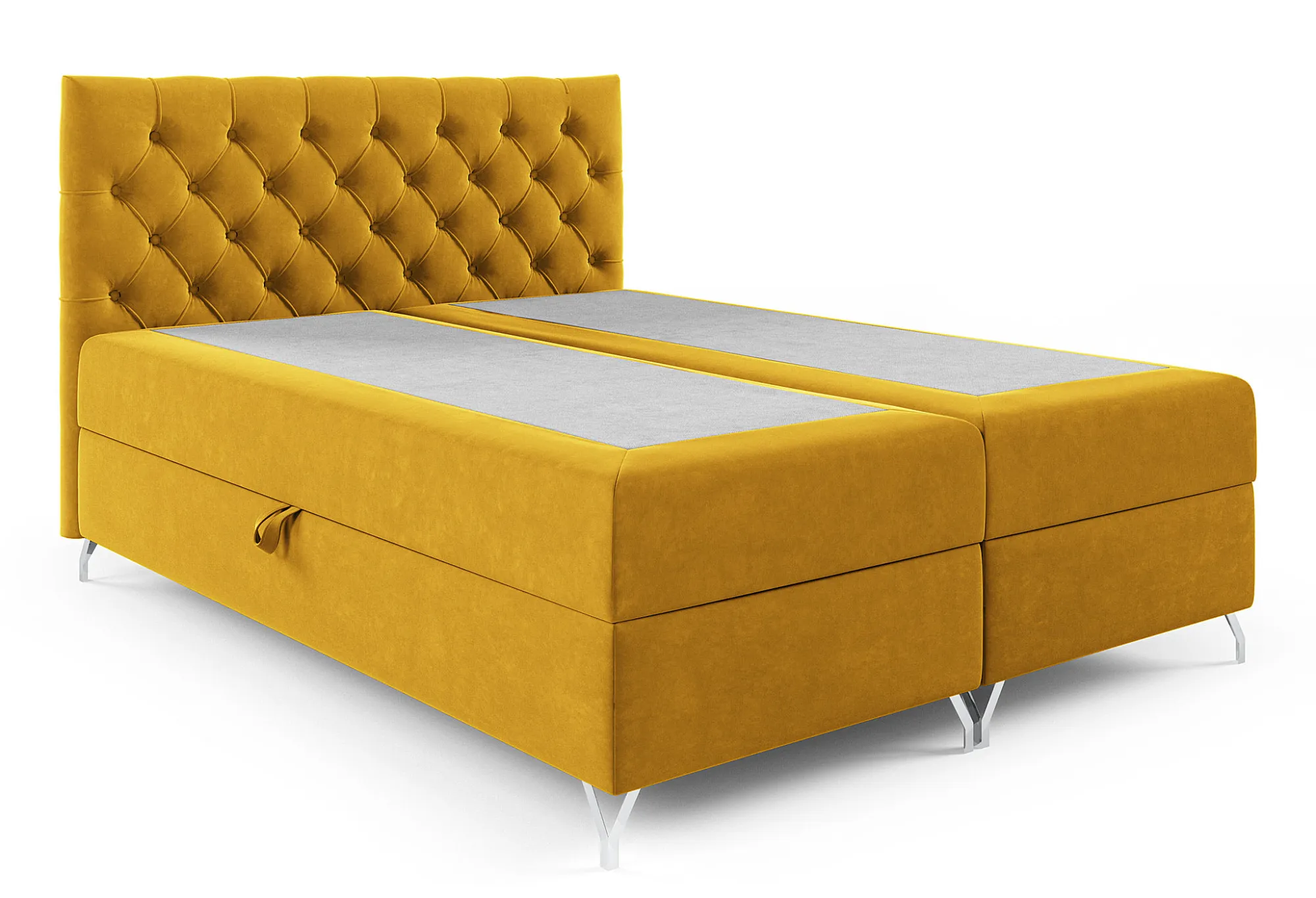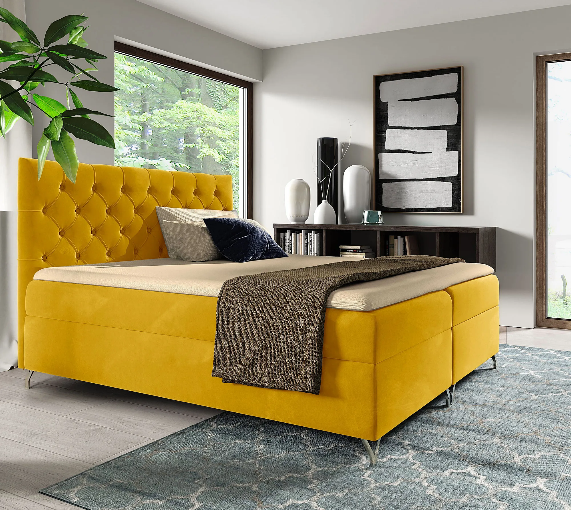 Żółte łóżko kontynentalne z pikowanym zagłókiem 5 rozmiarów - Lunavello 4X