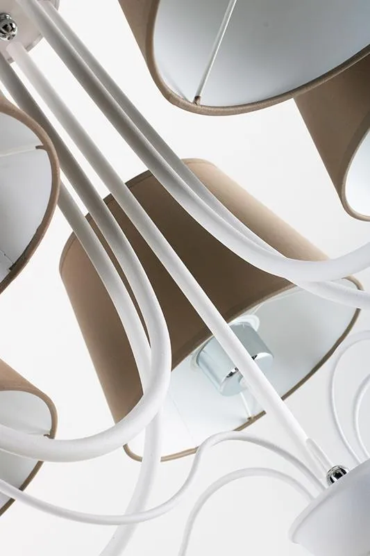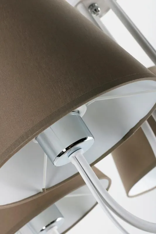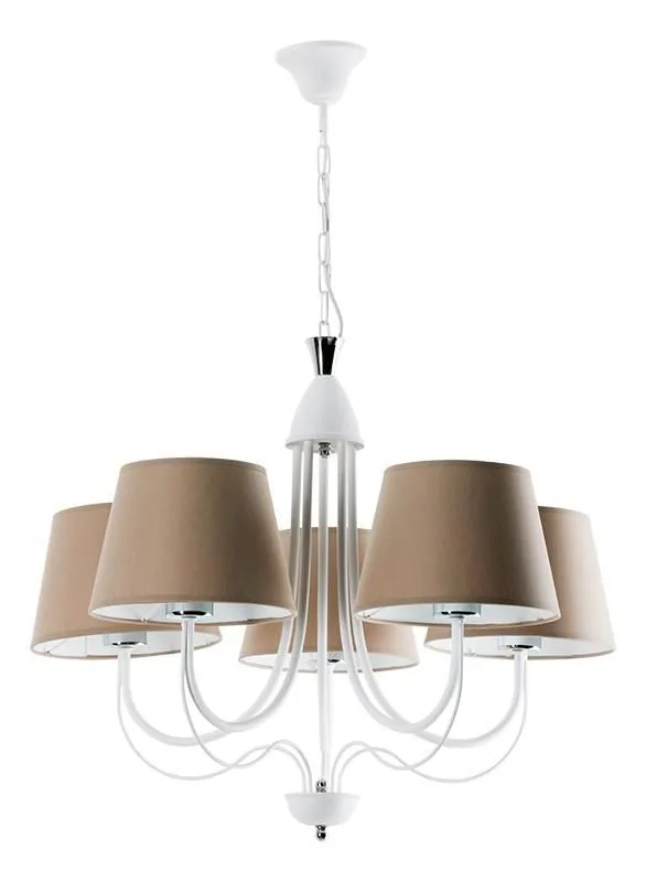 E266-Halsox to żyrandol, który zadowoli najbardziej wymagających klientów. Pięć punktów świetlnych pięknie wypełni swoją jasnością pomieszczenie. Całość prezentuje się niezwykle stylowo. Do produkcji wykorzystano metal i tkaninę najwyższej jakości, co daje gwarancję trwałości i niezawodności przez wiele lat. Polecana jest przede wszystkim do klasycznych aranżacji, w takich miejscach jak salon, jadalnia, sypialnia, kuchnia oraz korytarz.