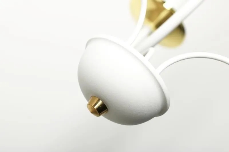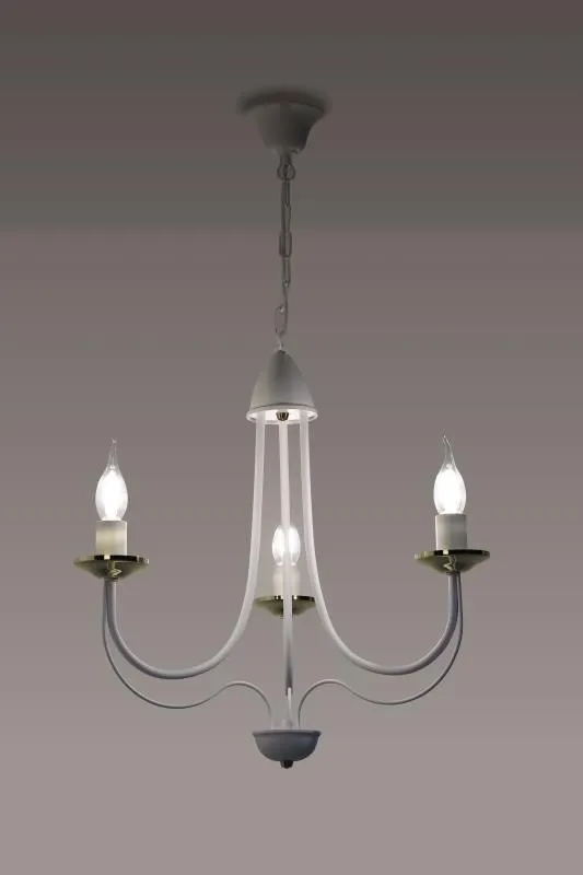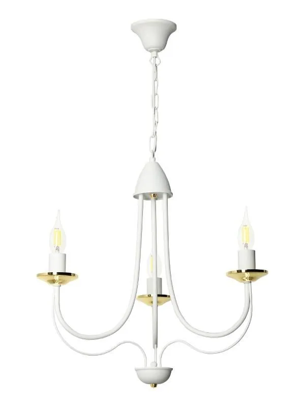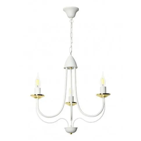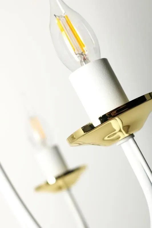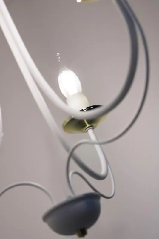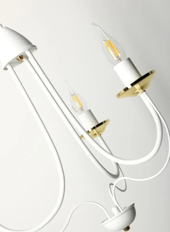 E234-Rivo to wspaniały żyrandol świecznikowy utrzymany w stylu vintage. Biały metalowy korpus w połączeniu ze złotymi akcentami tworzy wspaniały duet, a jego unikalny kształt wprowadzi do wnętrza niepowtarzalny, lekko tajemniczy klimat. Lampa została wykonana z materiałów najwyższej jakości, dzięki czemu prezentuje się wspaniale.